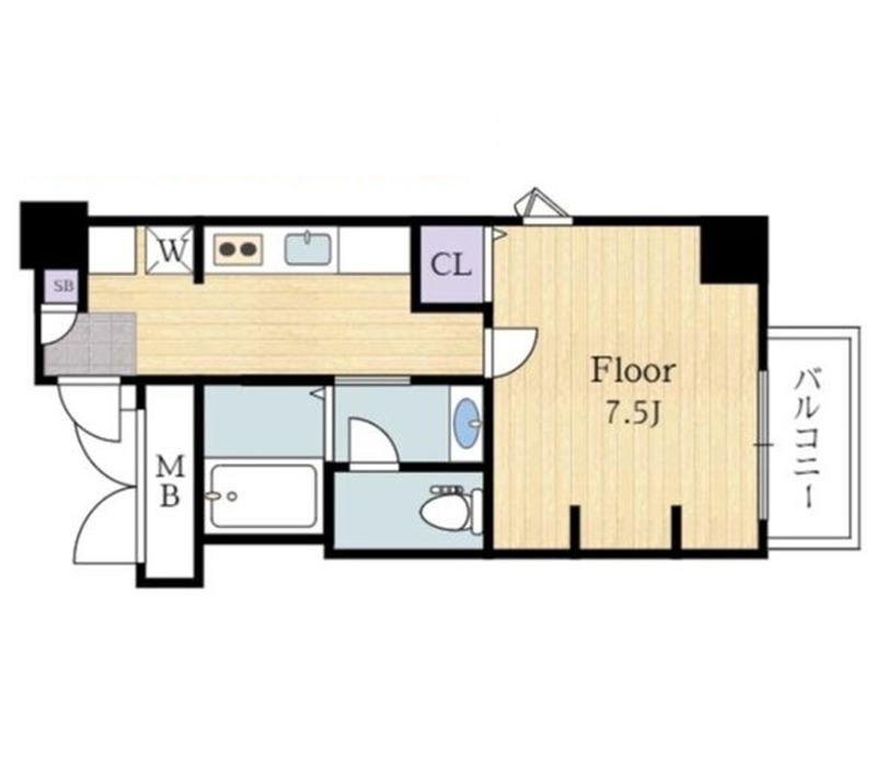 | 間取り詳細 | K 2.5畳 、 洋室 7.5畳 |