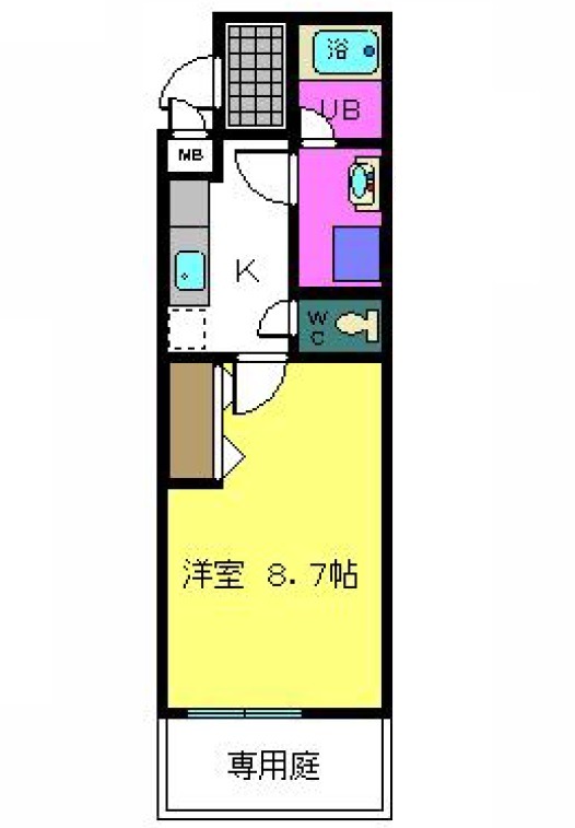 | 間取り詳細 | K 2.5畳 、 洋室 8.7畳 |