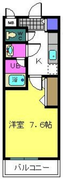 | 間取り詳細 | K 2.5畳 、 洋室 7.6畳 |
