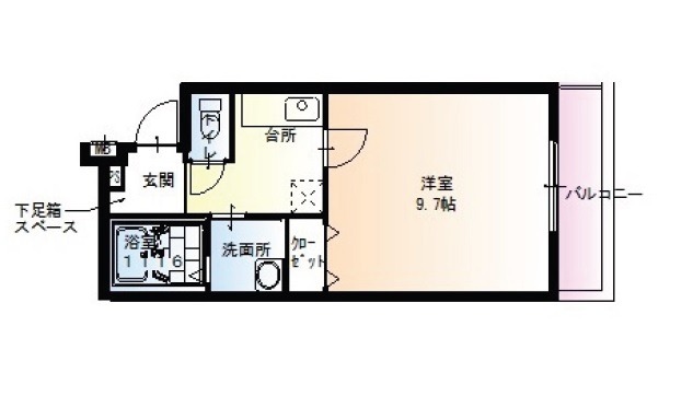 | 間取り詳細 | 洋室 9.7畳 、 K 2.5畳 |