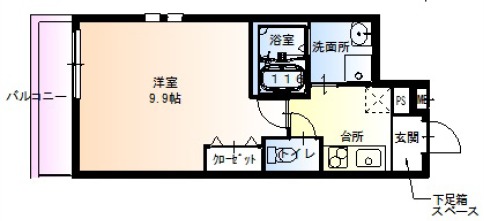 | 間取り詳細 | K 2.5畳 、 洋室 9.9畳 |