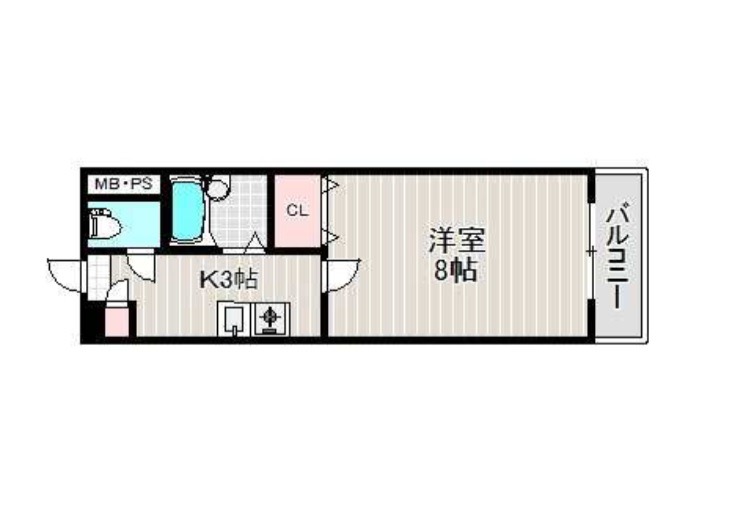 | 間取り詳細 | K 2.5畳 、 洋室 8畳 |
