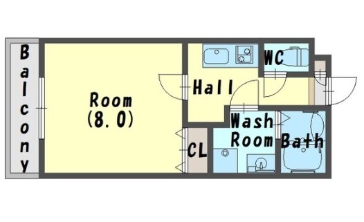 | 間取り詳細 | K 2.5畳 、 洋室 8畳 |
