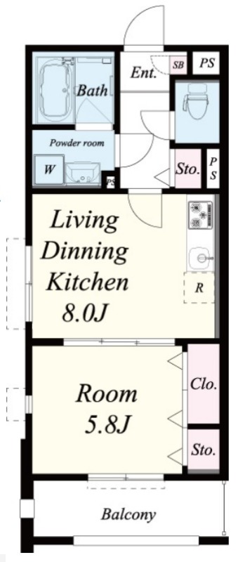 | 間取り詳細 | LDK 8畳 、 洋室 5.8畳 |