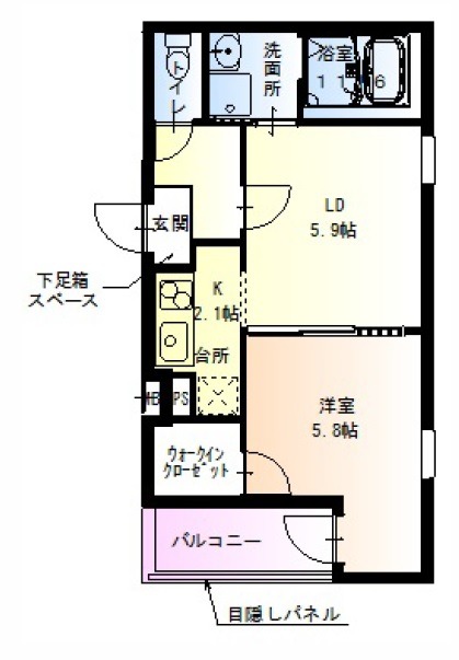 | 間取り詳細 | LDK 8畳 、 洋室 5.8畳 |
