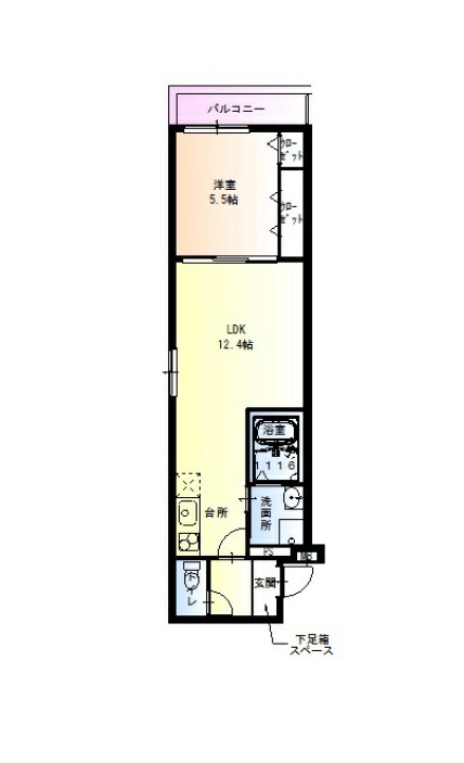 | 間取り詳細 | LDK 12.4畳 、 洋室 5.5畳 |