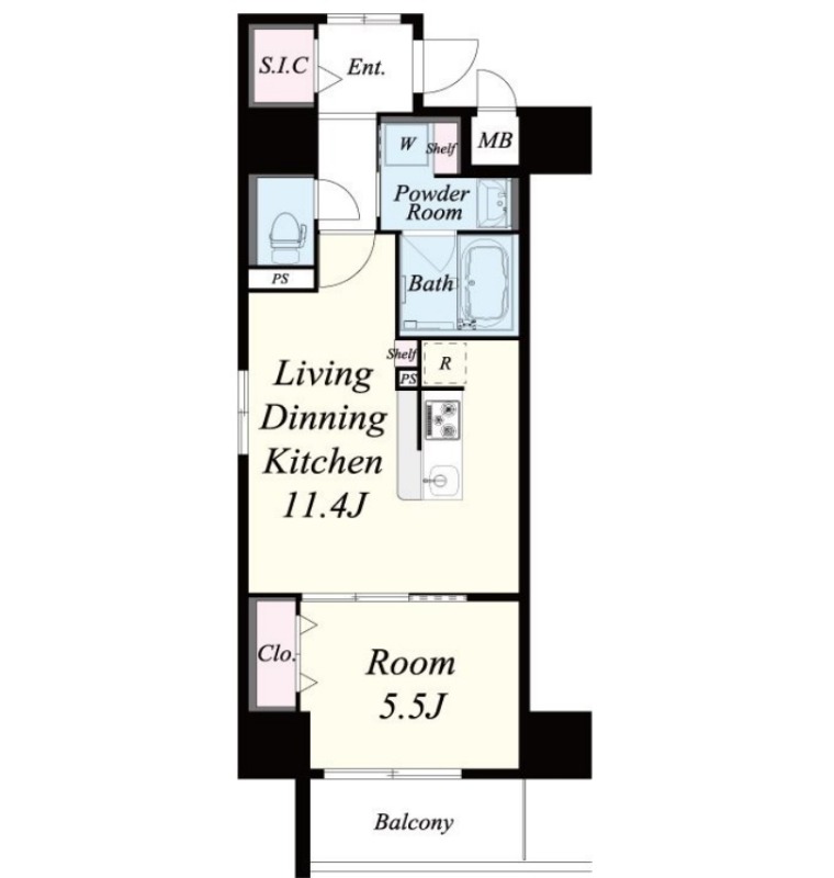 | 間取り詳細 | LDK 11.4畳 、 洋室 5.5畳 |