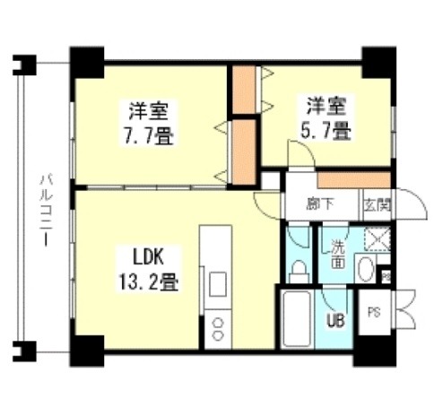 | 間取り詳細 | LDK 13.2畳 、 洋室 7.7畳 、 洋室 5.7畳 |