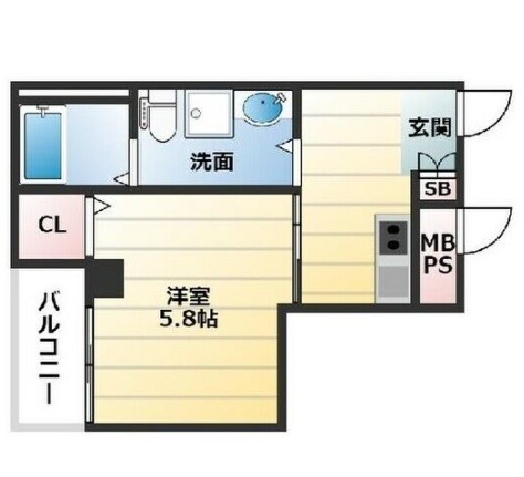 | 間取り詳細 | K 2.5畳 、 洋室 5.8畳 |