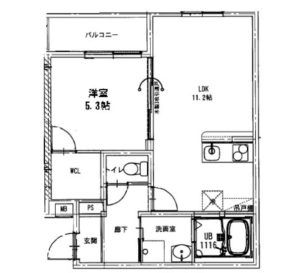 | 間取り詳細 | LDK 11.2畳 、 洋室 5.3畳 |