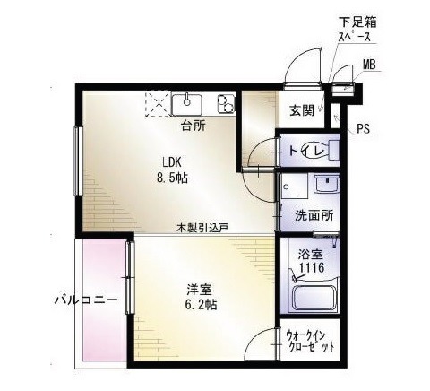 | 間取り詳細 | LDK 8.5畳 、 洋室 6.2畳 |