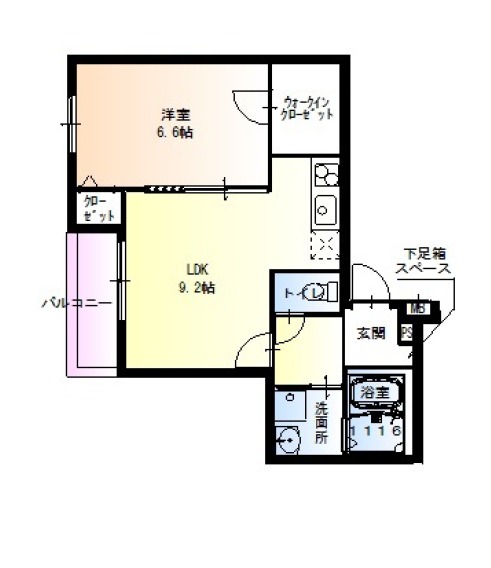| 間取り詳細 | LDK 9.2畳 、 洋室 6.6畳 |