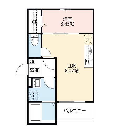 | 間取り詳細 | LDK 8.02畳 、 洋室 3.45畳 |