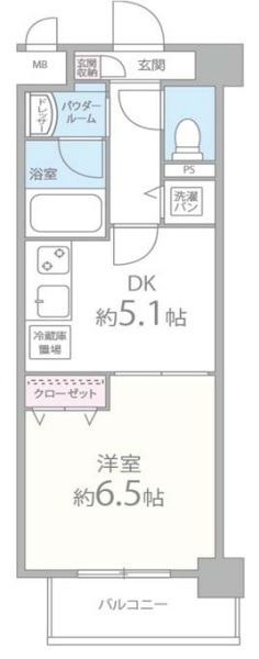 | 間取り詳細 | DK 5.1畳 、 洋室 6.5畳 |