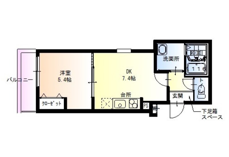 | 間取り詳細 | DK 7.4畳 、 洋室 5.4畳 |