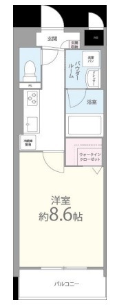 | 間取り詳細 | 洋室 8.6畳 、 K 2.5畳 |