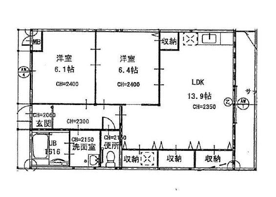 洋室 6.4畳 洋室 6.1畳 |