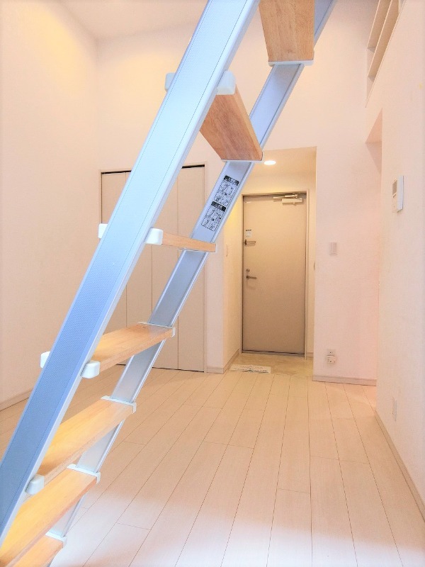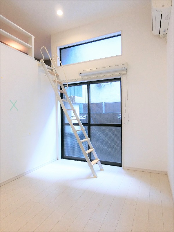 | 設備 | ガス(プロパン)、インターホン(TVモニター付き)、専用ゴミ置き場(24Hゴミ出し可)、日当り良好、デザイナーズ、通風良好、フローリング、全居室フローリング、ロフト、クッションフロア、ベランダ・バルコニー、クローゼット、クローゼット数(1)、バス・トイレ別(別室)、シャワー、追い焚き、脱衣所、給湯、ウォシュレット、洗面台、洗濯機置き場(室内)、コンロ設置済、コンロ口数(2)、コンロ種類(プロパン)、システムキッチン、エアコン、エアコン台数(1)、CATV、インターネット使用料無料 | ||