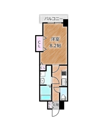 | 間取り詳細 | K 2.5畳 、 洋室 8.2畳 |