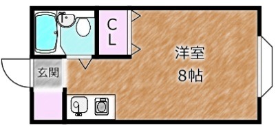 | ワンルーム | 洋室 8畳 | 18.5㎡ |