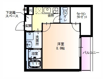| 間取り詳細 | K 2.5畳 、 洋室 8.6畳 |