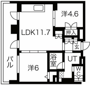| 間取り詳細 | LDK 11.7畳 、 洋室 6畳 、 洋室 4.6畳 |