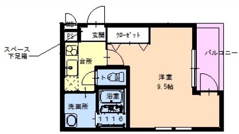 | 間取り詳細 | K 2.5畳 、 洋室 9.5畳 |