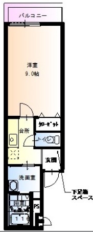 | 間取り詳細 | K 2.5畳 、 洋室 9畳 |