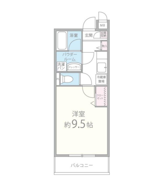 | 間取り詳細 | 洋室 9.5畳 、 K 2.5畳 |