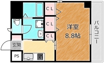 | 間取り詳細 | K 3畳 、 洋室 8.8畳 |