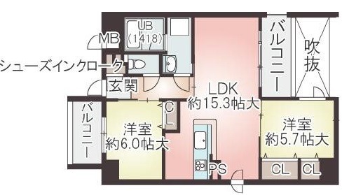 | 間取り詳細 | LDK 15.3畳 、 洋室 6畳 、 洋室 5.7畳 |