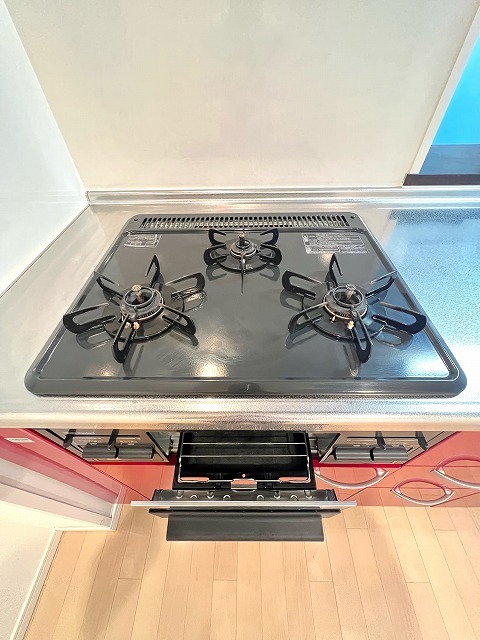 グリル付きの3口コンロで段取り良くお料理が出来ます♪