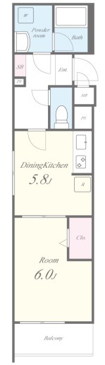 | 間取り詳細 | DK 5.8畳 、 洋室 6畳 |