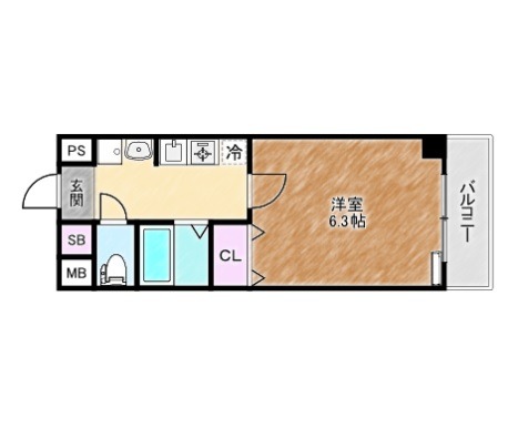 | 間取り詳細 | K 2.5畳 、 洋室 6.3畳 |