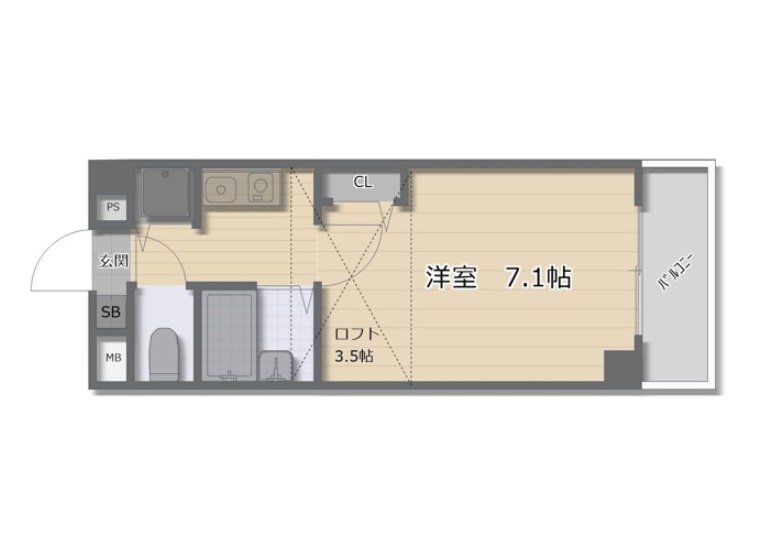 | 間取り詳細 | K 2.5畳 、 洋室 7.1畳 |