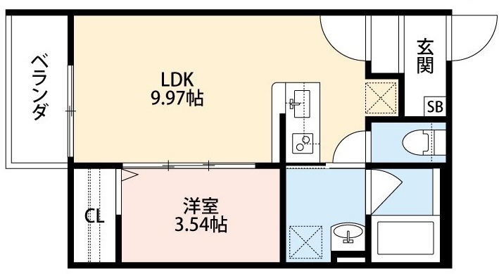 | 間取り詳細 | LDK 9.97畳 、 洋室 3.54畳 |