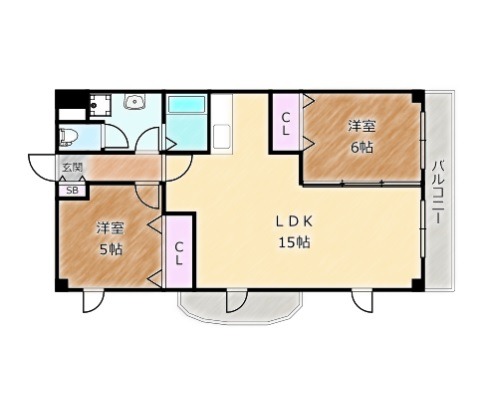 | 間取り詳細 | LDK 15畳 、 洋室 6畳 、 洋室 5畳 |