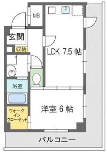 | 間取り詳細 | LDK 7.5畳 、 洋室 6畳 |
