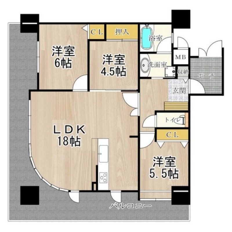| 間取り詳細 | LDK 17.5畳 、 洋室 6畳 、 洋室 4.5畳 、 洋室 5.5畳 |