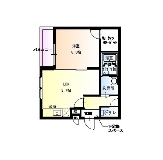 | 間取り詳細 | LDK 8.7畳 、 洋室 6.3畳 |
