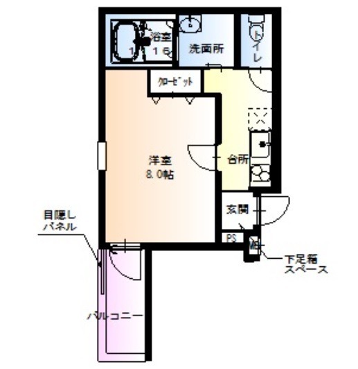 | 間取り詳細 | K 2.5畳 、 洋室 8畳 |