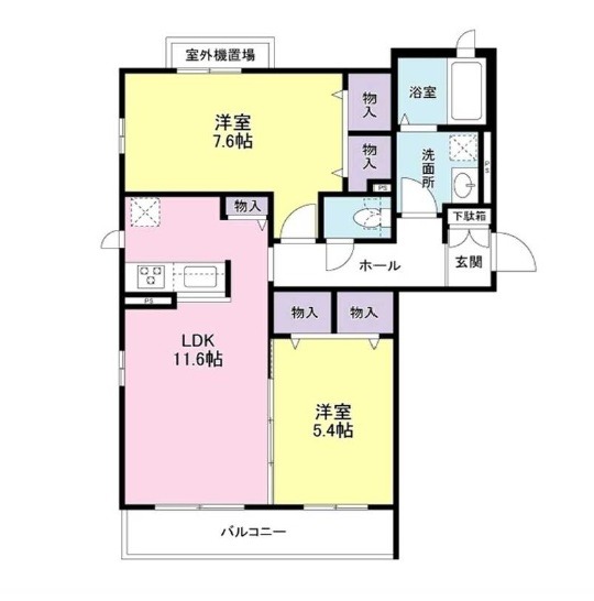 | 間取り詳細 | LDK 11.6畳 、 洋室 7.6畳 、 洋室 5.4畳 |