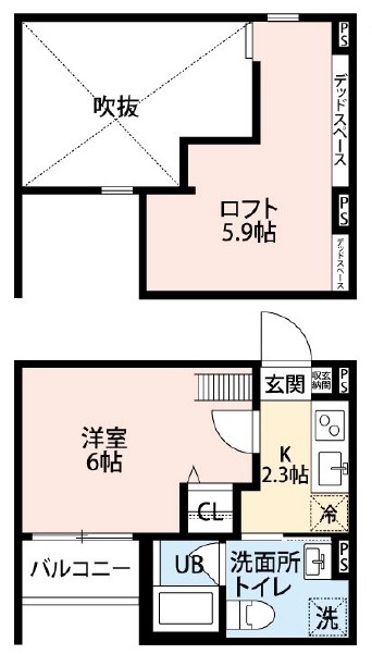 | 間取り詳細 | K 2.3畳 、 洋室 6畳 |