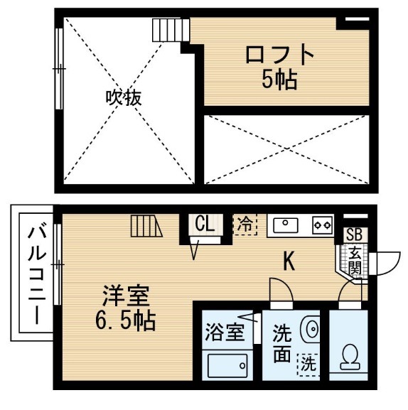 | ワンルーム | 洋室 6.5畳 | 22.98㎡ |