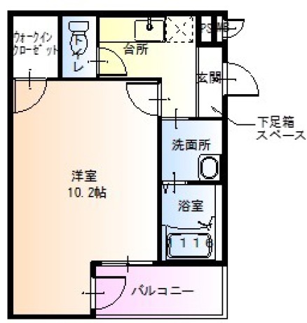 | 間取り詳細 | K 2.5畳 、 洋室 10.2畳 |