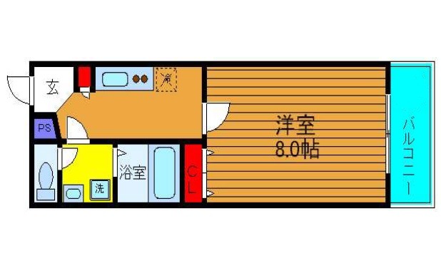 | 間取り詳細 | K 2.5畳 、 洋室 8畳 |