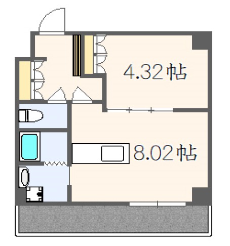 | 間取り詳細 | LDK 8.02畳 、 洋室 4.32畳 |