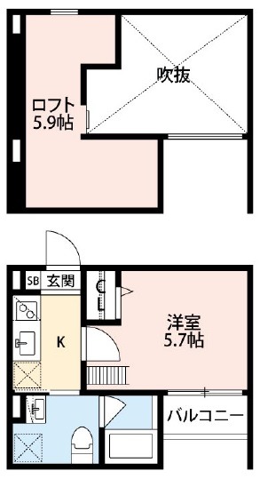 | 間取り詳細 | K 2.5畳 、 洋室 5.7畳 |