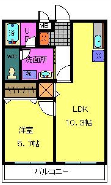 | 間取り詳細 | LDK 10.3畳 、 洋室 5.7畳 |