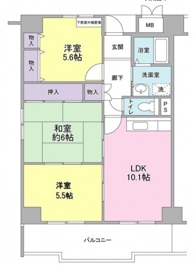 | 間取り詳細 | LDK 10.1畳 、 洋室 5.5畳 、 洋室 5.6畳 、 和室 5.6畳 |